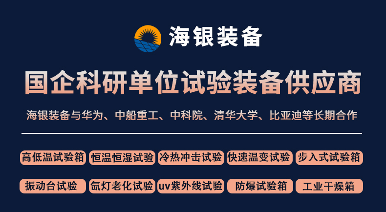 公司长期从事高低温试验箱,可程式恒温恒湿试验箱,冷热冲击试验箱,复层实环境老化试验箱,步入式高低温湿热试验箱,盐雾试验箱,紫外线加速老化试验机,振动试验台,跌落试验机,IP等级淋雨试验箱,IP等级沙尘试验箱,氙灯老化试验箱等可靠性测试设备的研发和生产。