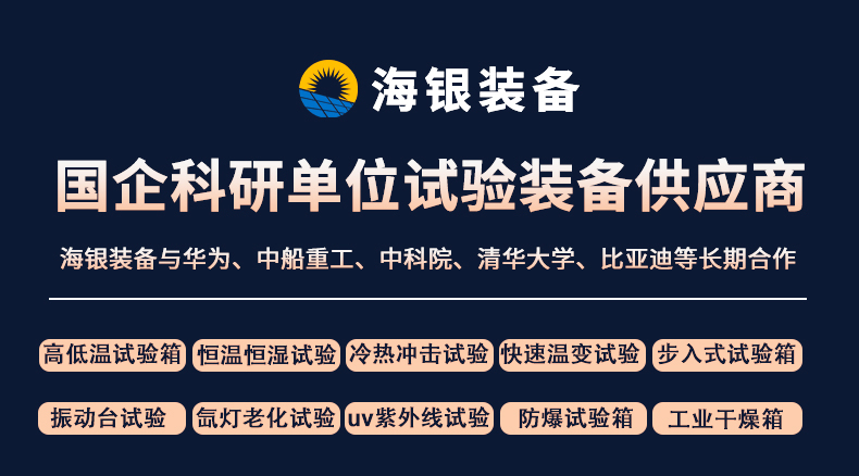 公司长期从事高低温试验箱,可程式恒温恒湿试验箱,冷热冲击试验箱,复层实环境老化试验箱,步入式高低温湿热试验箱,盐雾试验箱,紫外线加速老化试验机,振动试验台,跌落试验机,IP等级淋雨试验箱,IP等级沙尘试验箱,氙灯老化试验箱等可靠性测试设备的研发和生产。